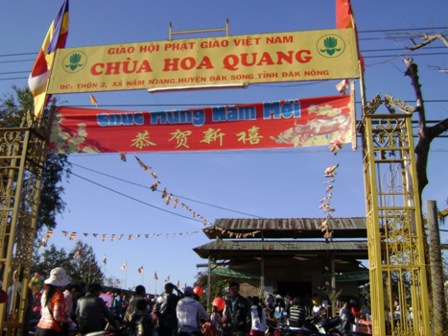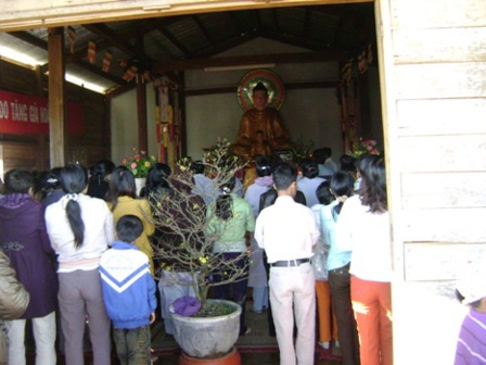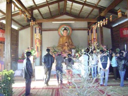 Được biết chùa chỉ có một vị thầy còn rất trẻ trụ trì, thầy là Đại Đức Thích Quảng Định với hoài bão nhỏ nhoi góp sức mình vào việc hoằng hóa nơi vùng kinh tế mới, thầy cùng Phật tử đã có cái tết đầy đủ tình đạo tình đời như hai câu băng rôn chúng tôi bắt gặp được: “Xuân đến rồi đi, nhưng xuân lòng bất diệt, Hoa có nở rồi tàn nhưng hoa đạo vẫn luôn tươi”.