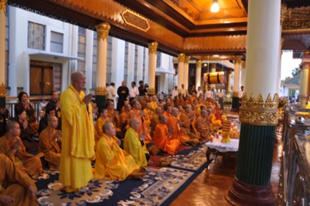 Chư Tôn giáo phẩm Lãnh đạo GHPGVN  tụng kinh tại chùa Vàng