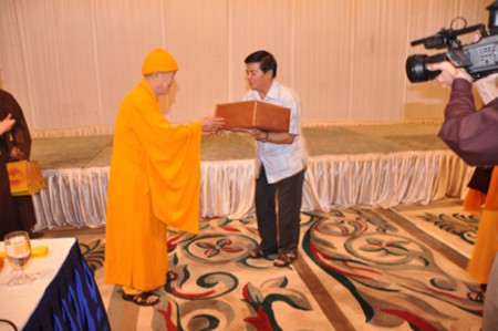 Hòa thượng Phó Pháp chủ tặng quà Tăng Ni sinh