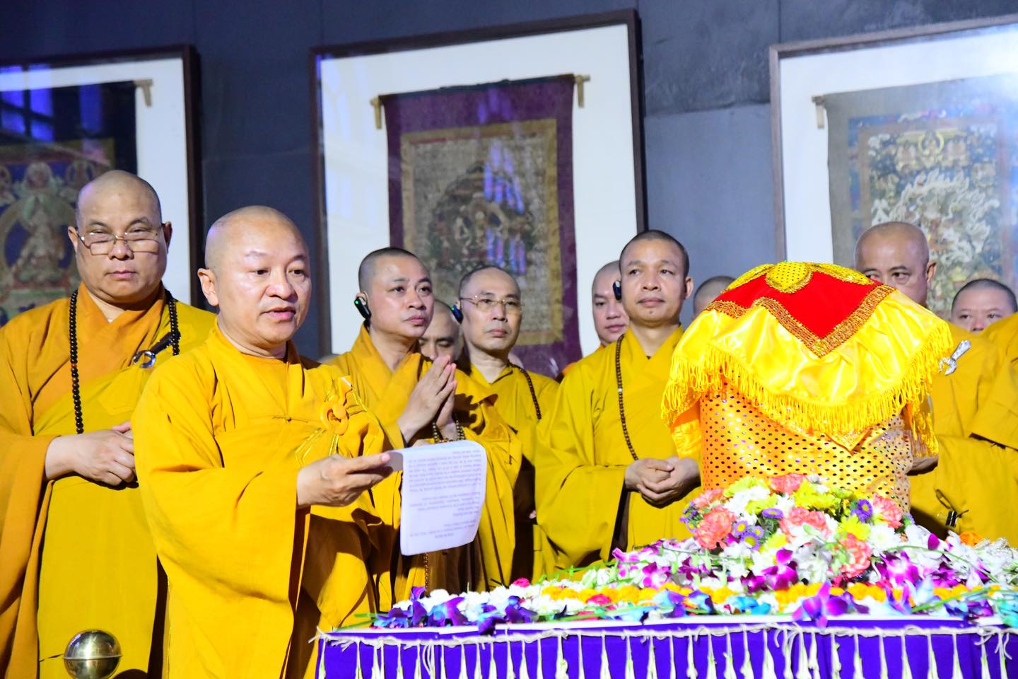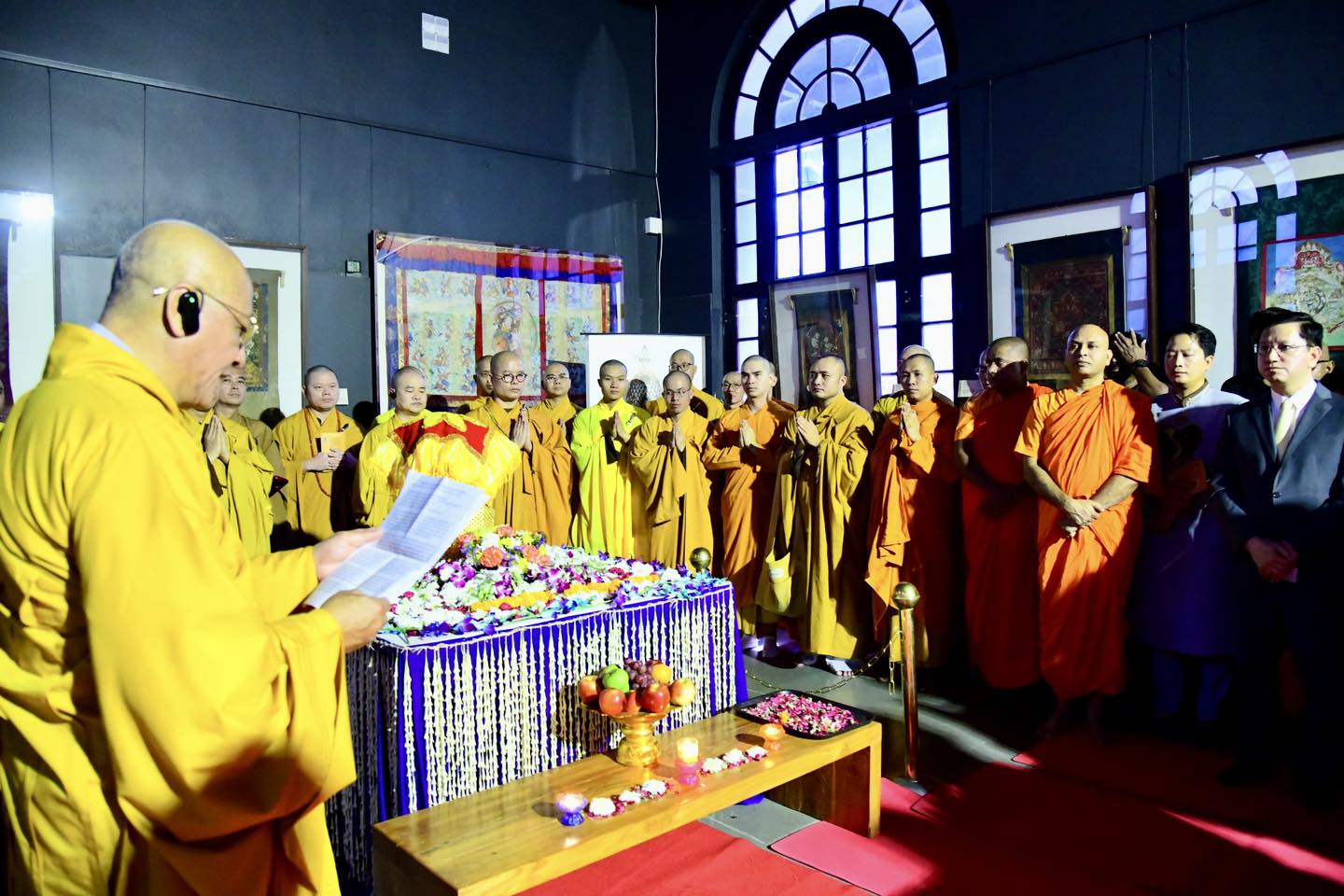 Sau nghi thức niêm hương, tụng kinh và bạch Phật, Hòa thượng Thích Huệ Thông đã thay mặt Giáo hội phát biểu tri ân sâu sắc đến Chính phủ Ấn Độ, Viện Bảo tàng Quốc gia, IBC và Chính phủ Việt Nam đã đồng hành, hỗ trợ thực hiện sự kiện mang ý nghĩa tâm linh và ngoại giao trọng đại này.