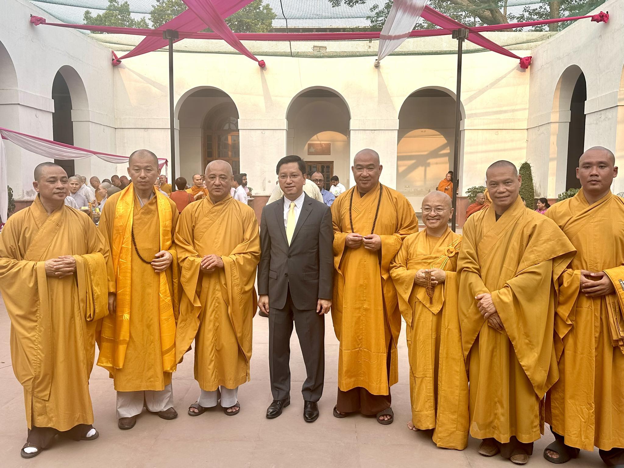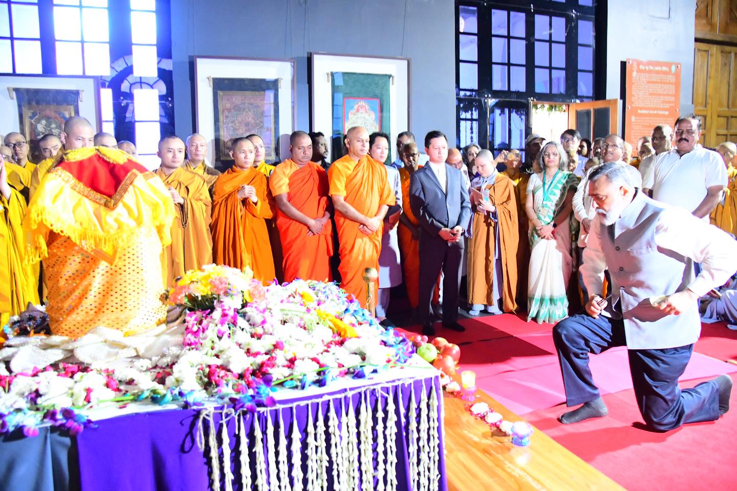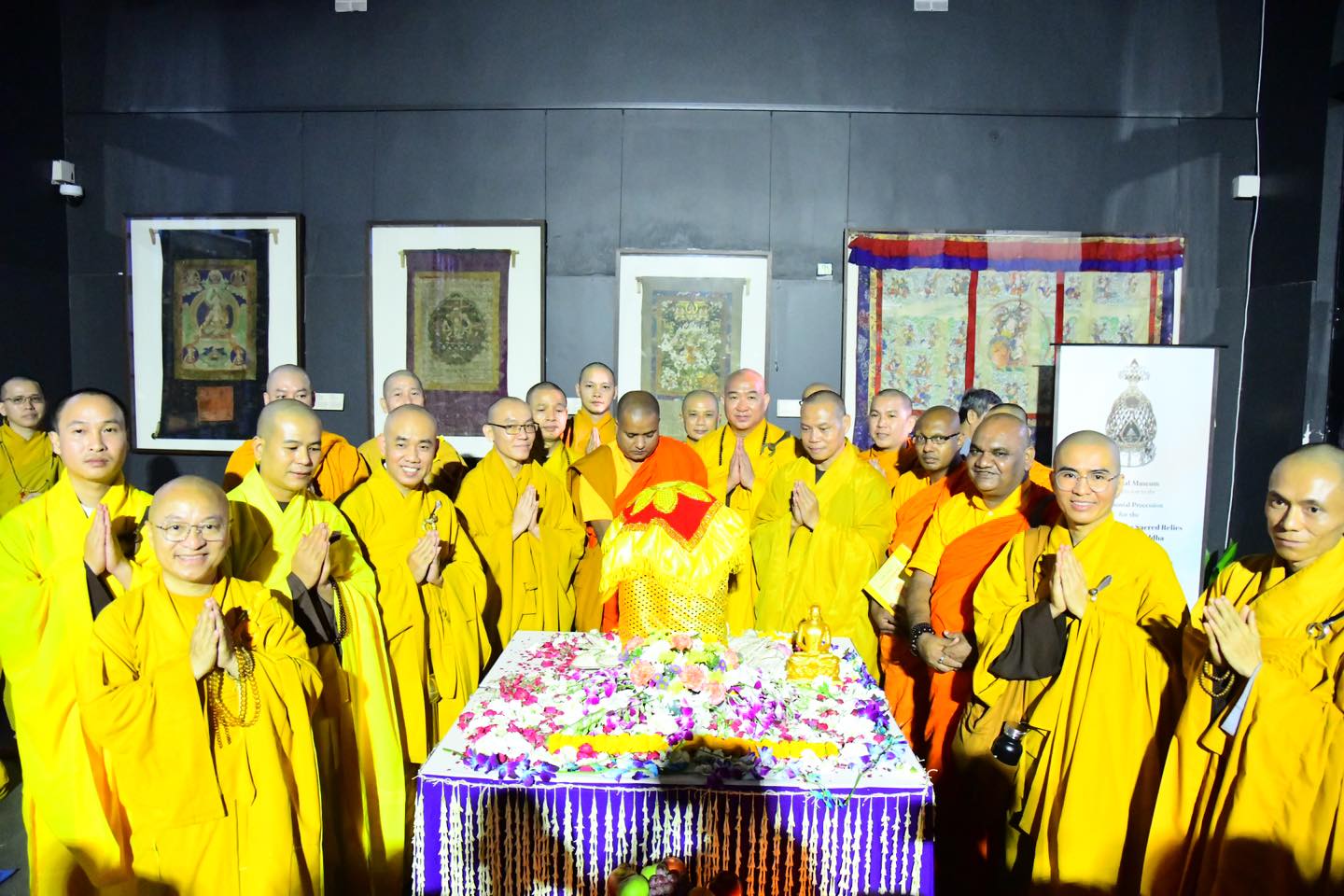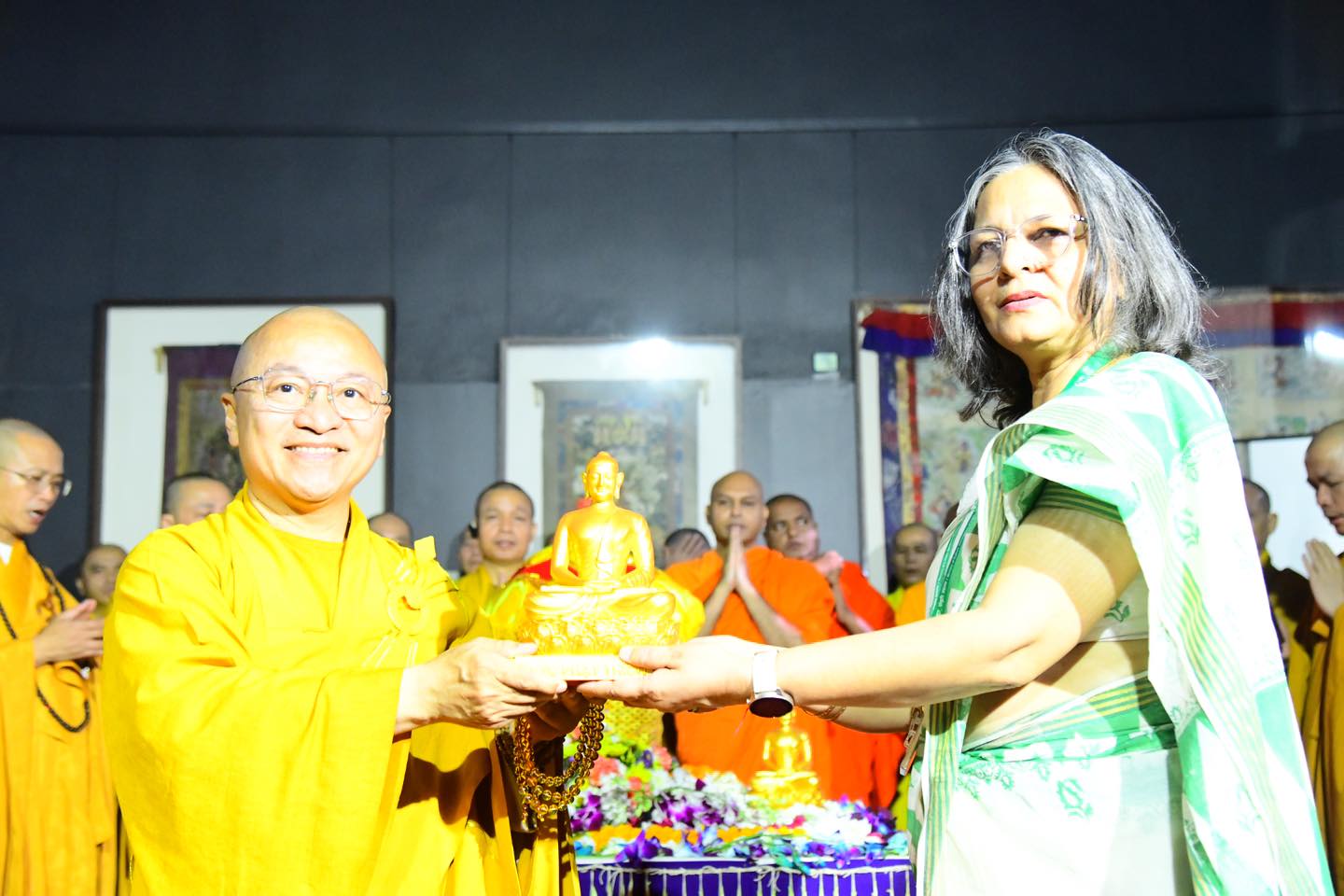 Buổi lễ thiêng liêng có sự hiện diện của Ngài Kiren Rijiju – Bộ trưởng Liên bang Ấn Độ về Công bằng xã hội và Trao quyền; ông Nguyễn Thanh Hải – Đại sứ Đặc mệnh toàn quyền Việt Nam tại Ấn Độ; Tiến sĩ Abhijit Halder – Tổng Giám đốc Liên minh Phật giáo Quốc tế (IBC); lãnh đạo Viện Bảo tàng Quốc gia Ấn Độ; cùng đông đảo chư Tôn đức Tăng Ni và Phật tử hai nước.