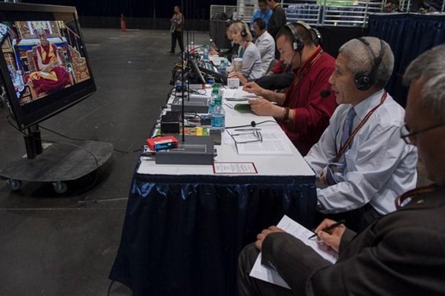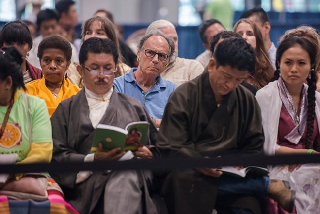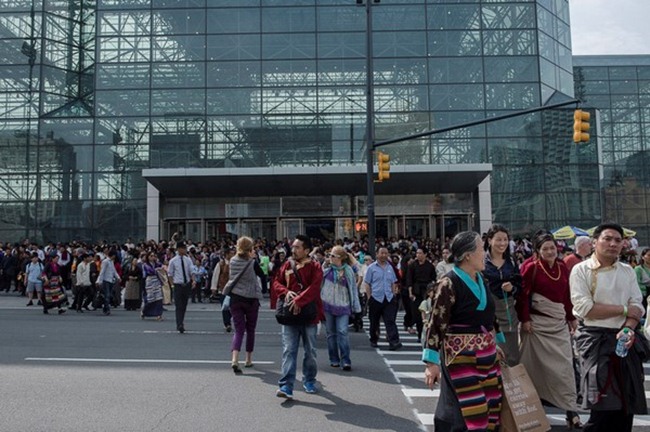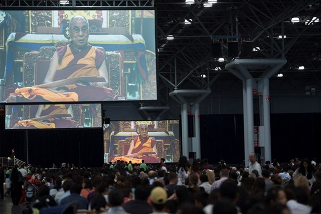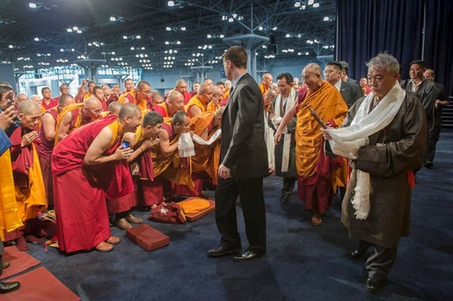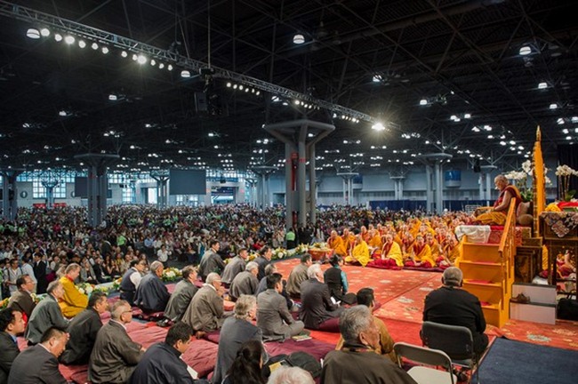 Tại Trung tâm Hội nghị Jacob K. Javits, Thành phố New York hơn 14.000 thành viên của cộng đồng Tây Tạng lưu vong Bắc Mỹ, cung nghinh đức Đạt Lai Lạt Ma lên Sân khấu, hai bên chư Tăng, Tiến sĩ Lobsang Sangay Thủ tướng Chính phủ Tây Tạng lưu vong (Sikyong), cư sĩ Penpa Tsering Chủ tịch Quốc hội Tây Tạng lưu vong, và một số các cựu thành viên của Kashag (Văn phòng Bộ trưởng của Chính phủ Tây Tạng lưu vong).