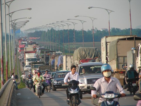 Tắc cầu, cánh lái xe ra ngắm sông Đuống và hóng mát