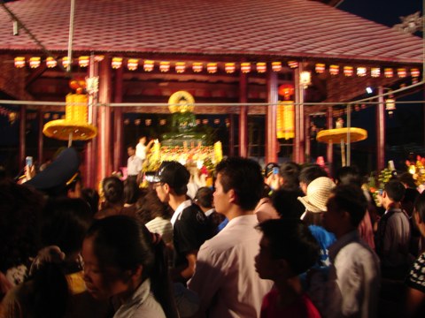 … nên càng về tối, dòng người đổ về chùa ngày càng đông