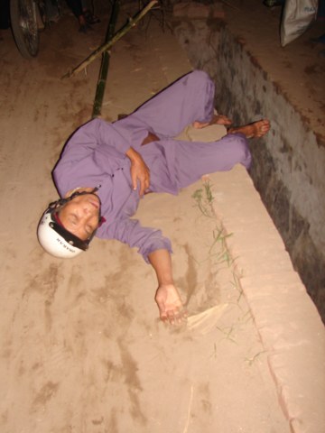 … dẫn đến cụ bà này bị rơi xuống hố rất đau đớn.