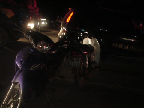 Dùng hai xe máy chắn giữa đường để phân làn giao thông. Một sáng kiến chỉ có ở Việt Nam