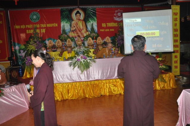 Tới chứng minh Hội thi có TT. Thích Thanh Điện – Phó ban thường trực Ban hướng dẫn Phật tử Trung ương, TT. Thích Thanh Giác – Phó ban Hướng dẫn Phật tử Trung ương, TT. Thích Chân Không – Phó ban kiêm Chánh thư ký Ban Hướng dẫn Phật tử Trung ương, TT. Thích Chiếu Tạng – Phó ban Hướng dẫn Phật tử Trung ương, TT. Thích Nguyên Thành – Trưởng ban Trị sự THPG Thái Nguyên cùng chư Tôn đức các tỉnh thành hội Phật giáo phía Bắc.