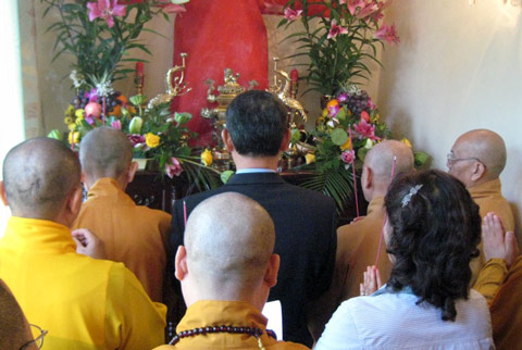Buổi trưa cùng ngày, tại trung tâm thương mại Sa Pa đoàn đã dự lễ khánh thành và an vị tượng Phật tại Niệm Phật Đường Vĩnh Nghiêm-Praha.
