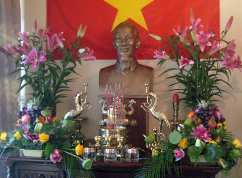 Đoàn hành lễ an vị tượng Chủ tịch Hồ Chí Minh tại Đại sứ quán