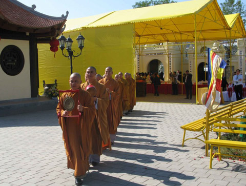 Sau lời phát biểu khai mạc của ông Phạm Nhật Vũ – chủ tịch tập đoàn An Viên là lời ban đạo từ của hòa thượng trưởng đoàn, đại diện chính quyền địa phương bà phó chủ tịch ủy ban nhân dân tỉnh Kharkov phát biểu chào mừng đoàn Hoằng pháp Châu Âu của TW giáo hội và chúc mừng tân trụ trì.