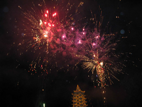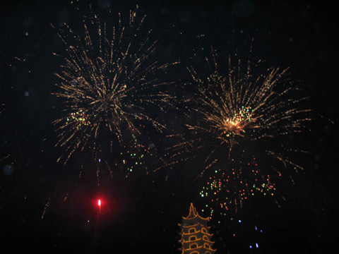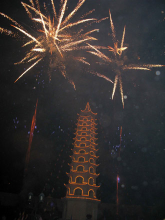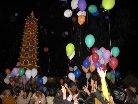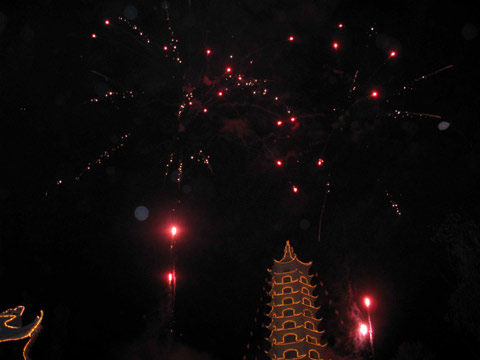 Kết thúc buổi lễ là màn đốt pháo và bắn pháo hoa chúc mừng thành công hết sức hoành tráng trong niềm hân hoan phấn khởi của bà con Phật tử.