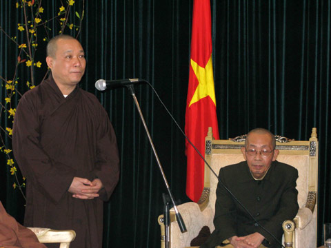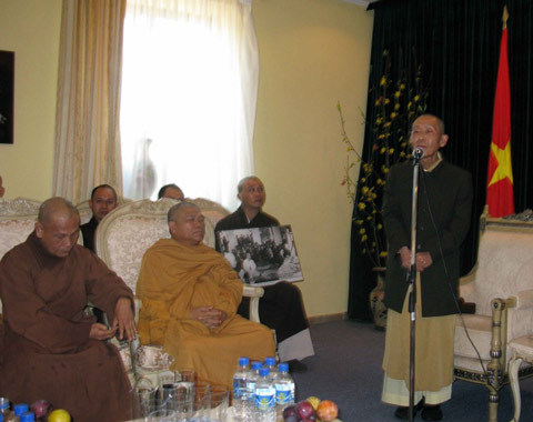 Sau lời phát biểu chào mừng của HT. trưởng đoàn, ngài Đại sứ đã báo cáo với Giáo hội về tình hình sinh hoạt của bà con cộng đồng người Việt tại Ucraina và cung thỉnh Hòa thượng thuyết giảng về đề tài “Đạo làm người”.