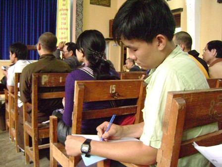 Sau đó tất cả các học viên đi thực tế tập huấn về phương pháp phỏng vấn và lấy tin.