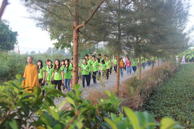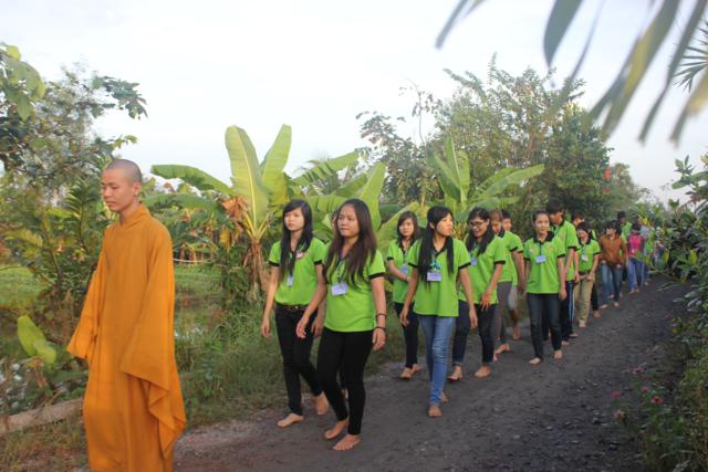 Sau đó, các bạn tu sinh được hướng dẫn thực tâp thiền quán để tiếp nhận năng lượng cho một ngày tu học mới, một ngày đầy an lạc và niềm vui, tiếp theo chuổi chương trình, là buổi thiền hành chánh niệm trong bình minh sương sớm, chào đón ánh mặt trời ló rạng phía đông, những bước đi an lạc thảnh thơi mà bấy lâu nay ta đánh mất. các bạn đi với tinh thần “ đi để mà đi chớ không phải đi để mà tới”,