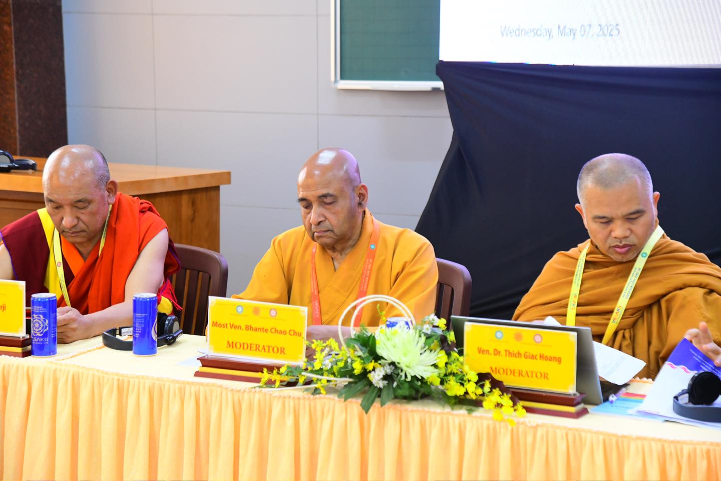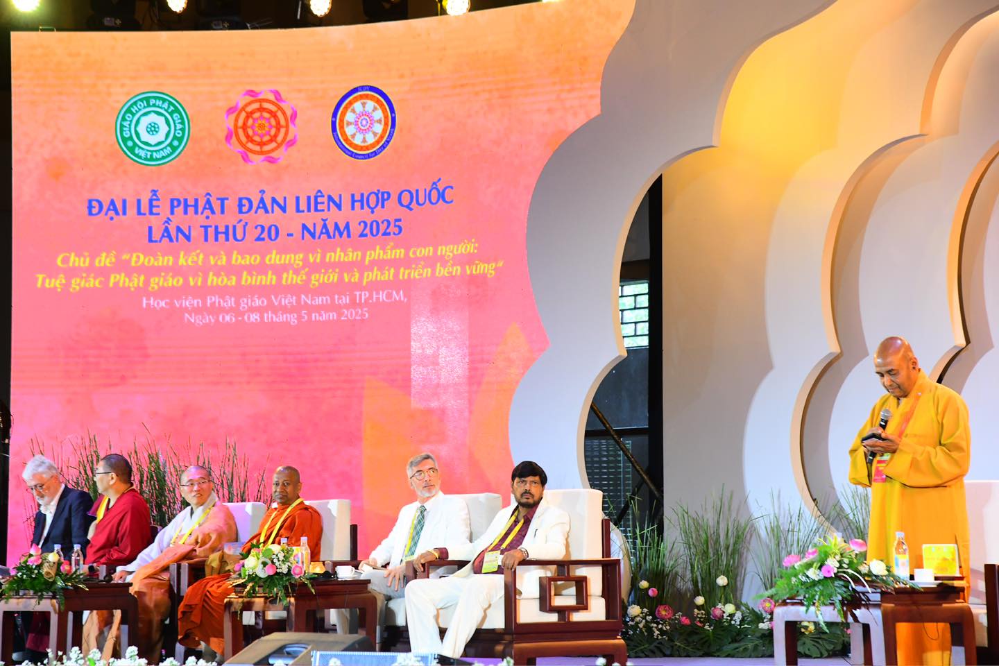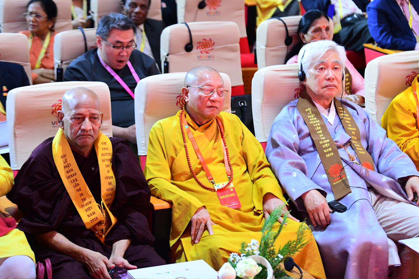 Trong phiên toàn thể sáng nay, Hội thảo tiếp tục nghe phát biểu và thông điệp của các vị đại diện Chính phủ, chư vị Tăng thống, Tăng vương, Chủ tịch, lãnh đạo các Giáo hội Tăng-già, tổ chức Phật giáo trên thế giới tham dự Đại lễ Vesak Liên Hiệp Quốc 2025 dưới sự điều hành của Hòa thượng Chao Chu, Phó Chủ tịch Hội đồng Tăng-già Phật giáo thế giới, Phó Chủ tịch Liên hữu Phật giáo thế giới.