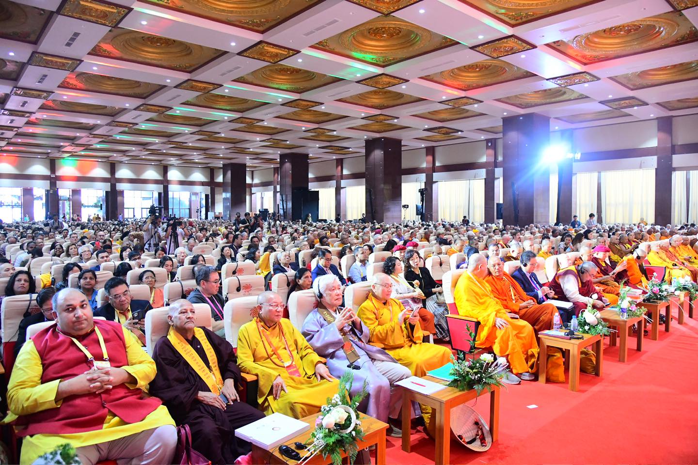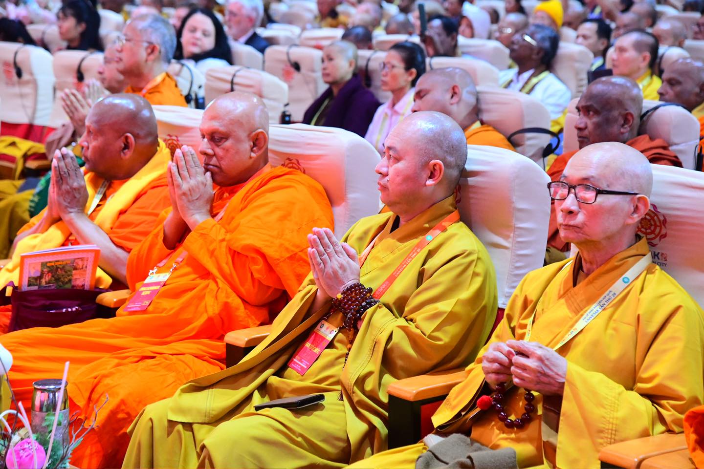 Trước khi bắt đầu chương trình buổi sáng, toàn thể đại biểu tụng kinh cầu nguyện hòa bình thế giới theo nghi thức của truyền thống Phật giáo Kim Cương thừa.