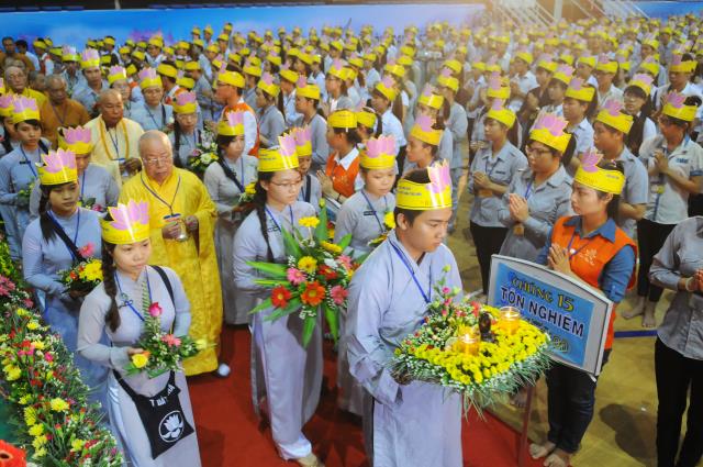 Đại diện lãnh đạo chính quyền thành phố  cùng 3.300 các em thanh thiếu niên, sinh viên, học sinh tham dự khóa tu.
