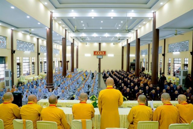 Trước khi bước vào kỳ thi sơ khảo, Hòa thượng Thích Huệ Thông – Chánh Chủ đàn có lời sách tấn đến các Giới tử tham gia cuộc thi khảo hạch. Hòa thượng nhấn mạnh: “Giới pháp là yếu tố quyết định để giúp người tu vượt khỏi sanh tử luân hồi, Vì vậy, các giới tử đã có tâm cần cầu giới pháp thì cần nỗ lực để vượt qua kỳ thi này”. Ngài hoan hỷ nhận thấy sự tham gia đầy đủ của các giới tử theo danh sách được đăng ký theo Ban Thư ký báo cáo. Hòa thượng nhắc nhở các giới tử cần nghiêm túc, chu đáo trong việc oai nghi, tế hạnh, làm tốt phần khảo thí về mọi mặt để có kết quả tốt nhất. Cuối lời, Hòa thượng cầu nguyện hồng ân Tam bảo, lịch đại Tổ sư gia hộ cho chư Tôn đức luôn được dồi dào sức khỏe, hoàn thành mọi Phật sự của mình, chúc các Giới tử hoàn thành tốt kỳ thi khảo hạch.