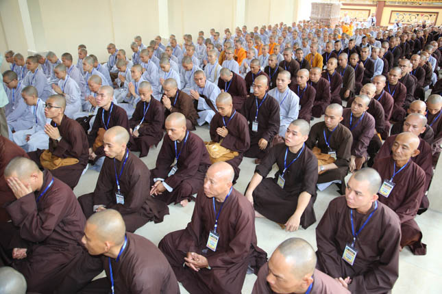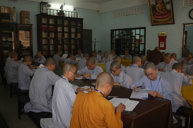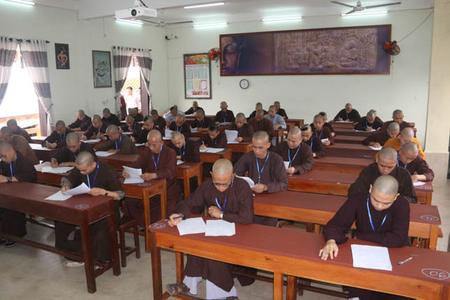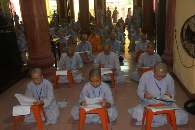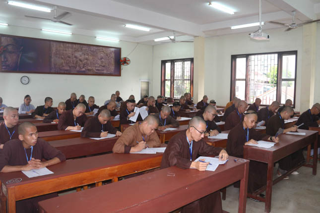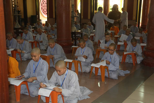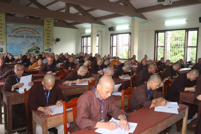 ĐĐ. Thích Chúc Tín – Phó thư ký kiêm Chánh văn phòng BTS GHPGVN Tp Đà Nẵng, Hiệu trưởng Trường TCPH Đà Nẵng, Chủ tịch hội đồng khảo thí đã có lời phát biểu động viên các giới tử trước khi bước vào phòng thi.