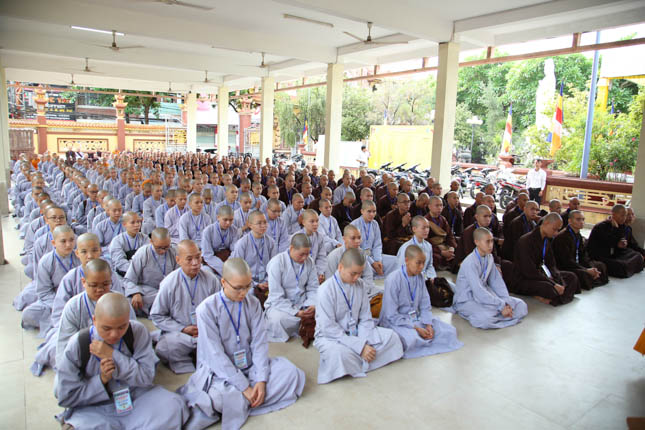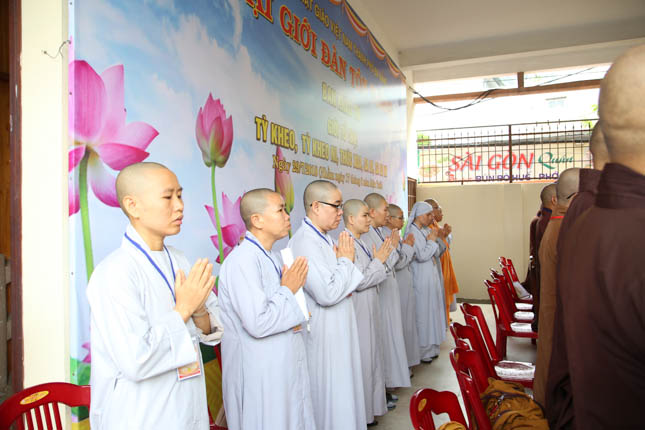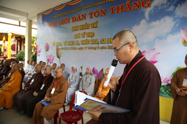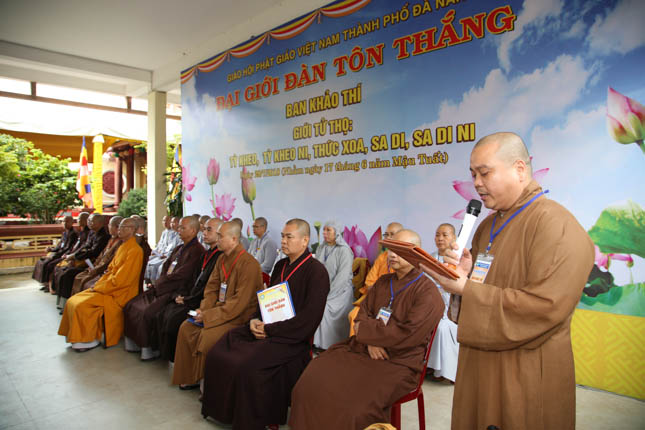 Sau phần điểm danh, ĐĐ. Thích Pháp Châu – Phó thư ký kiêm Phó văn phòng BTS GHPGVN Tp Đà Nẵng đã công bố quyết định thành lập Hội đồng khảo thí; ĐĐ. Thích Thông Đạt công bố nội quy thi.