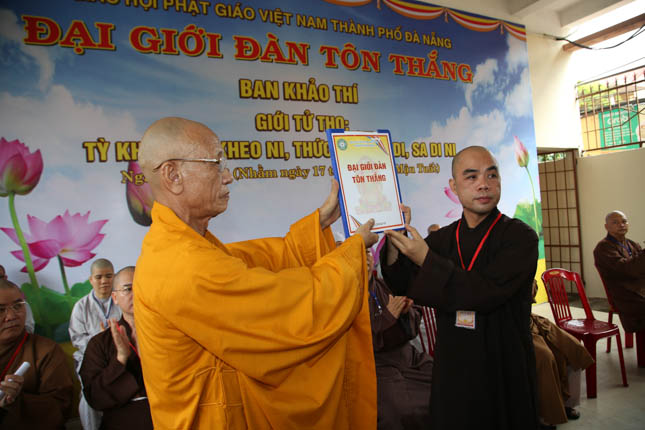 Sáng ngày 29/7/2018 (17/6 Mậu Tuất), tại chùa Phổ Đà (340 Phan Châu Trinh, Q. Hải Châu, Tp Đà Nẵng) Ban tổ chức Đại giới đàn Tôn Thắng đã tổ chức khảo thí các giới tử xuất gia thọ giới Tỳ Kheo, Tỳ Kheo Ni, Thức Xoa, Sa Di và Sa Di Ni (346 giới tử: Tăng 175, Ni 171).