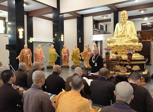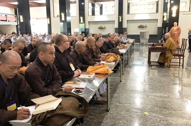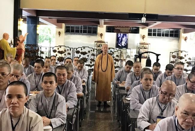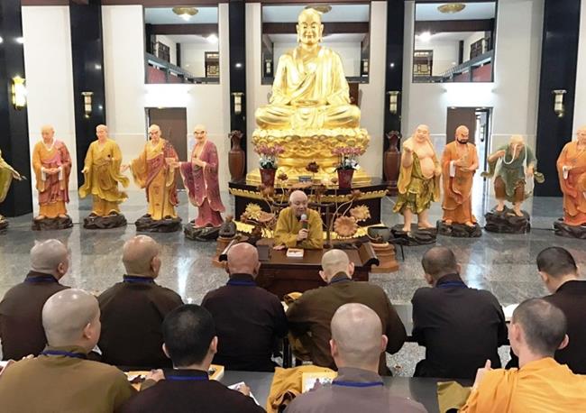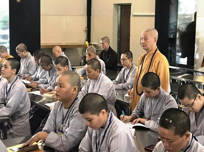 Sau lễ khai giảng, HT.Thích Minh Thông – Trưởng Ban Tăng Sự GHPGVN TP.HCM đã hướng dẫn Tăng Ni học viên môn Luật học.