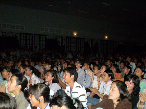 Đoàn Hà Nội cũng nói lời chia sẻ với các bạn của các đoàn khác đang ngồi cùng thiền đường rằng ”Chúng ta đừng lên lãng phí thời gian tuổi trẻ của mình, chúng ta hãy sống cùng nhau, sống làm sao để có thể thực hiện được những ước mơ, lý tưởng và hoài bão, làm cho cuộc đời tươi đẹp hơn hạnh phúc hơn. Chúng mình biết rằng sẽ có nhiều người trẻ có những tâm nguyện giống chúng mình, hy vọng chúng ta sẽ cùng đi chung với nhau như một dòng sông các bạn nhé”