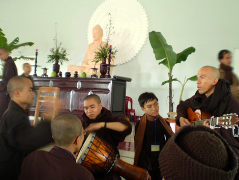 Ngoài các giờ công phu tọa thiền sáng, các buổi nghe pháp thoại tại thiền đường, các bạn trẻ được tập hát, múa, biểu diễn văn nghệ, kể chuyện cười..vv.. Không khí của khóa tu rất trẻ trung và vui tươi.