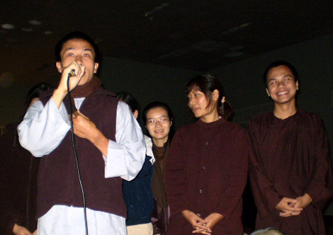 Đoàn Hà Nội có số lượng thành viên khiêm tốn nhất, chỉ hơn 10 bạn hòa cùng một nghìn các bạn khác cùng tạo nên một gia đình lớn ấm áp vui tươi. Buổi tối thiền trà cuối cùng trước khi kết thúc, đoàn Hà Nội đã phát biểu bày tỏ những suy nghĩ cảm nhận sau khóa tu, gửi lời cám ơn đến quý thầy cô, mong muốn những khóa tu như vậy được tổ chức thường xuyên hơn để mọi người có môi trường thực tập chuyển hóa.