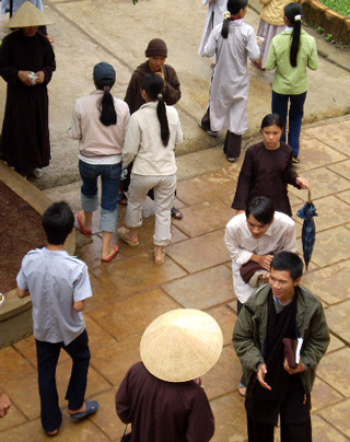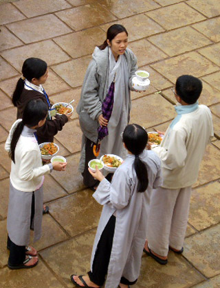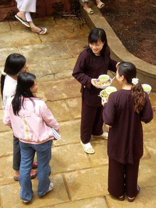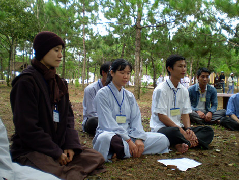 Các bạn trẻ đã được quý thầy quý sư cô hướng dẫn cách đi và đã biết bước đi một cách vững trãi thảnh thơi trong từng hơi thở có ý thức, thực tập lắng nghe trong chính niệm, học cách tiếp xúc với thức ăn một cách sâu sắc, thực tập trao nhau những nụ cười, cùng nhận diện được niềm hạnh phúc đang có trong tay.