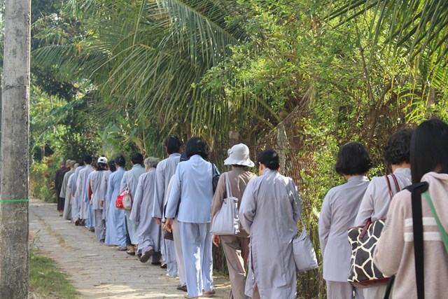 Vào khoảng canh tư mọi người còn đang an giấc, các hành giả Phật tử tập trung tại Tu viện Quan Âm- Quận Phú Nhuận để khởi hành đến địa điểm đã định trước. Sau 30 phút giải lao, đúng 09:00 đoàn bắt đầu một ngày tu học với buổi chia sẻ pháp thoại của Thượng Tọa viện chủ về quá trình hình thành và phát triển cũng như cốt lõi tu tập của dòng thiền Tổ Sư.