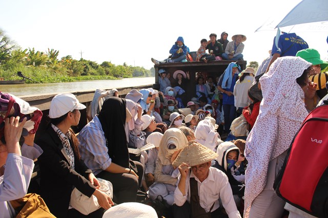 Buổi chiều đoàn đã xuôi thuyền dọc theo con sông Tiền tham quan vườn cây trái miền Tây, nếm trải cảm giác tự tay hái quả và thưởng thức tại chỗ ngay dưới gốc cây, hương vị dòn ngọt của những quả ổi, xoài, mận… như còn đọng lại trên đầu lưỡi,  thấm sâu vào tiềm thức. Sau đó đoàn thẳng tiến đến Chùa Hội Phước của  Thượng tọa Thích Lệ Trang. Đây là một ngôi chùa đẹp nổi tiếng ở vùng quê sông nước, chất liệu chủ đạo toàn bằng gỗ nguyên chất.