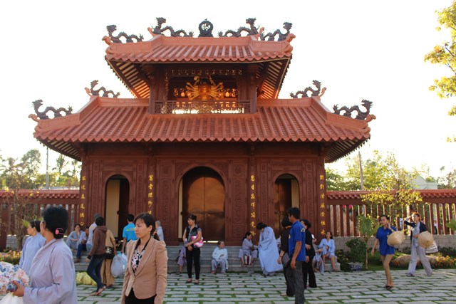 Cảnh trí nơi đây u nhã, nhẹ nhàng, thiền vị với những ngôi tháp trầm mặc, vườn đá rêu phong, lối về thẳng tấp với những khóm hoa khiêm cung khoe sắc bên lề, thấp thoáng đây đó những cối xây nước, những bánh xe chuyển luân gợi nhớ đại nguyện một thời… làm cho những ai một lần đến đều cảm nhận được sự siêu phàm thoát tục của miền đất Phật, khiến bao phiền lụy, bôn ba, toan tính, hận thù… bỗng chốc tan thành mây khói.
