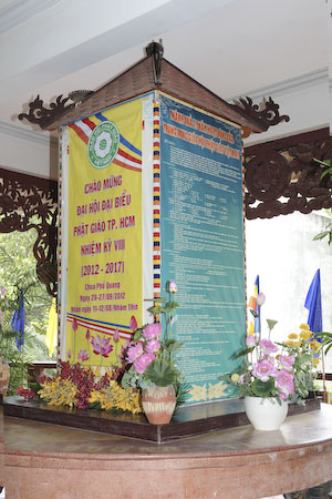 Theo Hiến chương Giáo hội Phật giáo Việt Nam, nhiệm kỳ VII (2007 – 2012) và thời gian hoạt động của Ban Trị sự Thành hội Phật giáo Tp. Hồ Chí Minh sắp mãn nhiệm, Ban Thường trực Ban Trị sự Thành hội Phật giáo Tp. Hồ Chí Minh nhất trí việc tổ chức Đại hội Đại biểu Phật giáo Tp. Hồ Chí Minh, nhiệm kỳ VIII (2012 – 2017), thời gian và địa điểm:* Thời gian: Vào ngày 26, 27/9/2012 (nhằm 11, 12/8/Nhâm Thìn),* Địa điểm: Chùa Phổ Quang – 64/3 Huỳnh Lan Khanh,P. 2, Q. TB.TP.HCM.