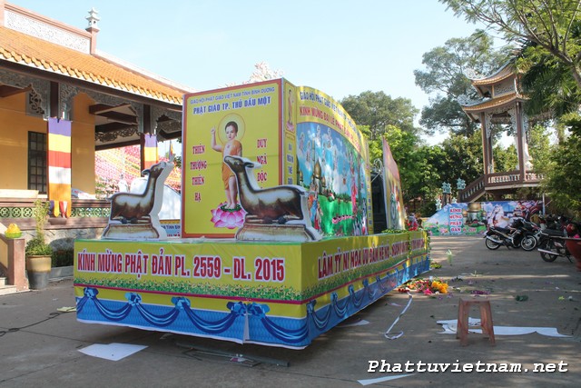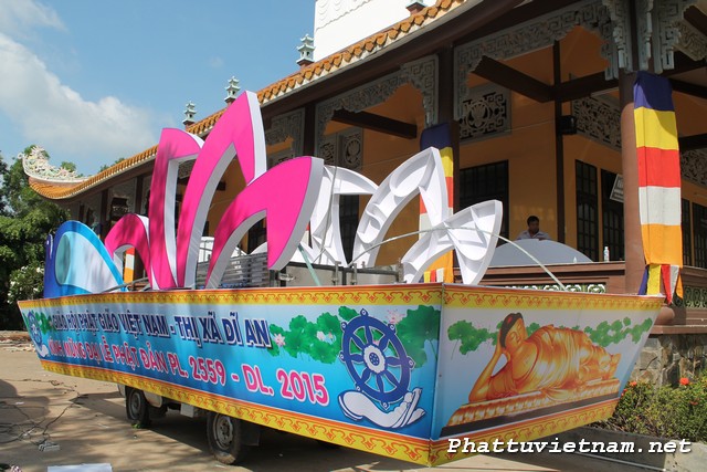 Hiện tại, các xe hoa đang được trang trí gấp rút công đoạn cuối, theo chương trình ngày 14/04 al (31/05/2015) – 16h00, 17 xe hoa tập trung tại chùa Hội An (trung tâm thành phố mới) diễu hành lộ trình 12 km về chùa Hội Khánh (TP.Thủ Dầu Một).