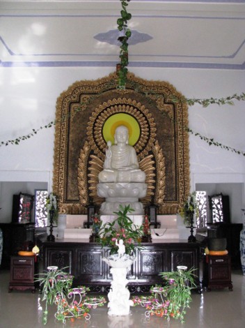 Trang trí lễ đài Phật đản do BTS THPG Tiền Giang tổ chức