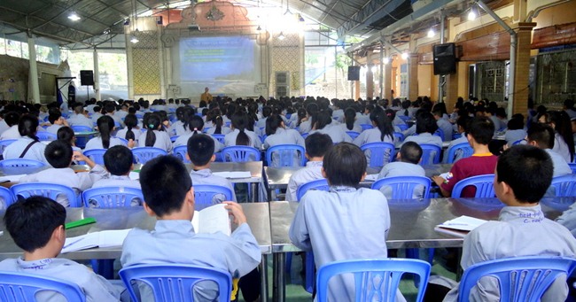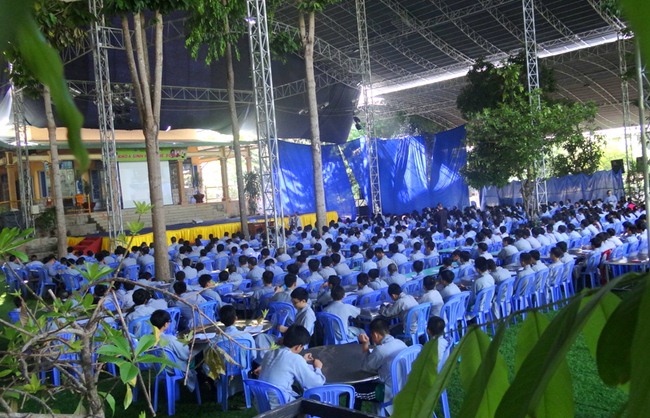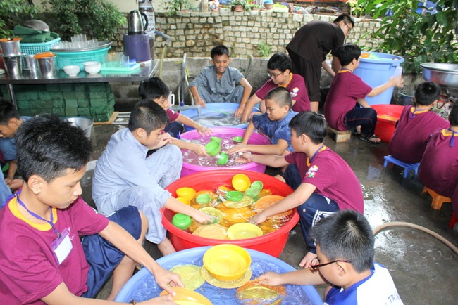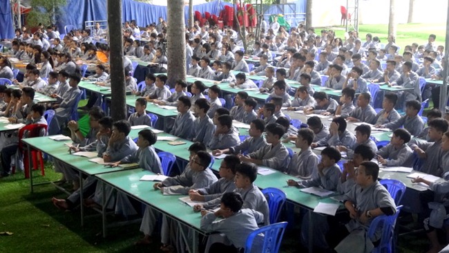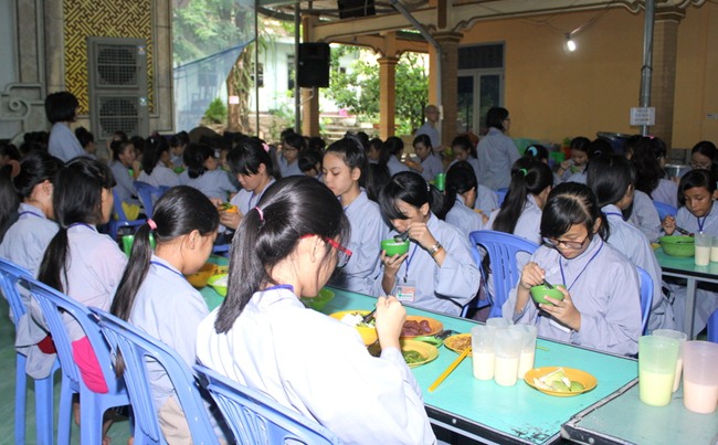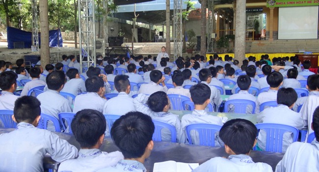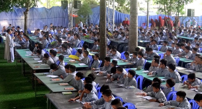 Với số lượng hiện tại là hơn 400 em thì khu Giảng đường dành nơi học tập mỗi khoá hè trước nay đã không đủ sức chứa, giờ đây mọi hoạt động học tập của các em được di chuyển ra sân cỏ trước chánh điện.