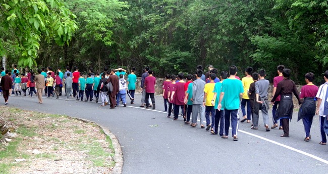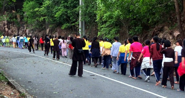 Băng qua hơn 300 bậc thang đá,vượt khỏi thung lũng chùa, sau đó đi ngược về phía suối Tiên, các em được thỏa mắt ngắm nhìn rừng núi ngút ngàn, được hít thở không khí trong lành. Nhiều em mệt nhưng cảm thấy vui vì lần đầu tiên các em đượctrải nghiệm một hành trình tản bộ khoảng 700m để nhận ra rằng:Con người thật sự rất nhỏ nhoi và đơn điệu trong thiên nhiên đa dạng. Rừng là cái nôi của sự sống, nếu rừng cứ tiếp tục bị tàn phá thì sự sống của con người cũng bị đe dọa theo. Chuyến đi dã ngoại này cũng nhằm giáo dục cho các em tình yêu thiên nhiên.