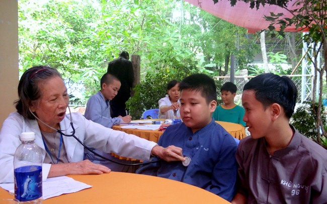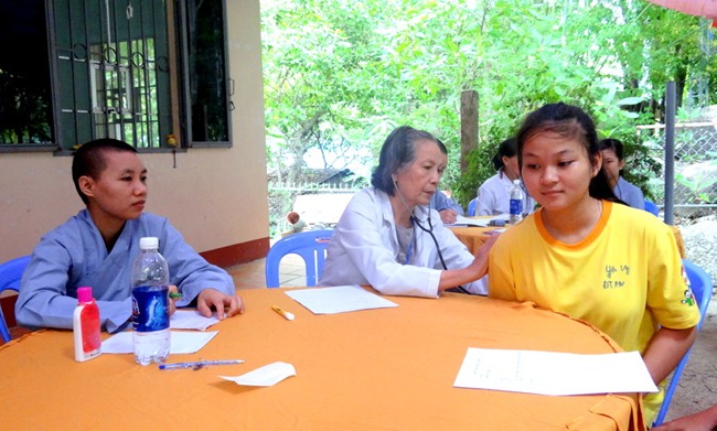 Cũng trong sáng chủ nhật, các Bác sĩ từ TP. Hồ Chí Minh đã lên khám và tư vấn sức khoẻ cho hơn 400 em học sinh.Được các bác sĩ khám, trò chuyện và tư vấn sức khoẻ,em nào cũng vui vẻ và yên tâm, mặc dùkhông được cha mẹ chăm sóc như ở nhà.