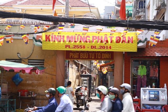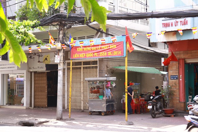 Trang chủ Tin tức Chùm ảnh: Không khí Phật đản tại TP.HCM Tin tức Chùm ảnh: Không khí Phật đản tại TP.HCM Bởi Phùng Nam - 8 Tháng Năm, 2014 Facebook Twitter Google+ Pinterest WhatsApp Email Print Viber Theo đó, Chỉ còn vài ngày nữa là đến ngày Rằm tháng Tư – ngày Đức Phật đản sanh hiện nay tại các ngả đường TP.HCM đã rực rỡ sắc cờ, pa-nô, băng-rôn kính mừng Phật đản PL: 2558. Phattuvietnam.net xin giới thiệu chùm ảnh không khí Phật đản tại TP.HCM;