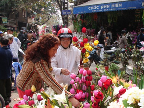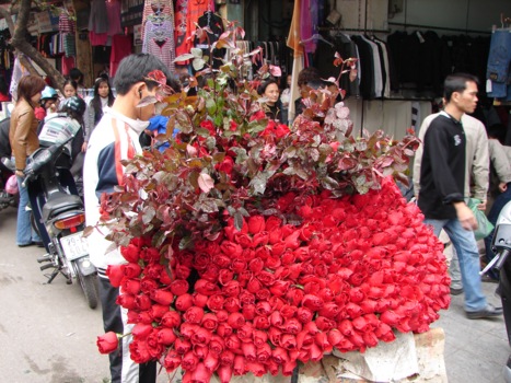Hoa hồng nhung đẹp được bán với giá khoảng 4.000 đồng/bông