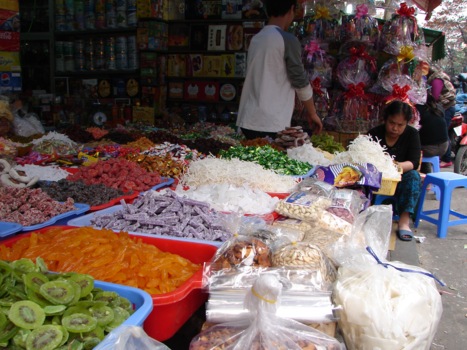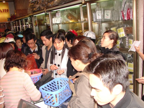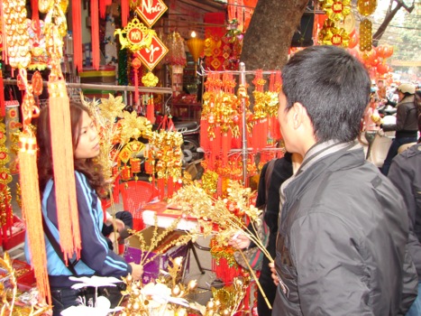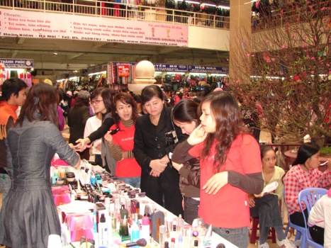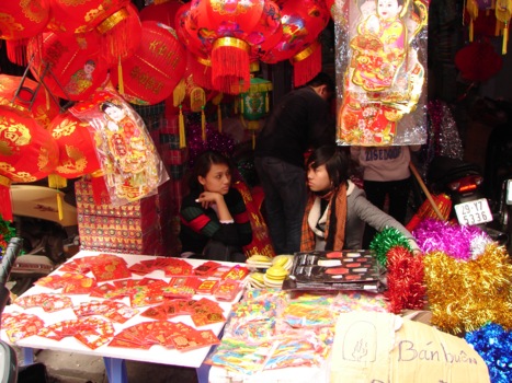 Nhiều người tranh thủ kiếm thêm mùa Tết ở không gian chật hẹp trong chợ Đồng Xuân