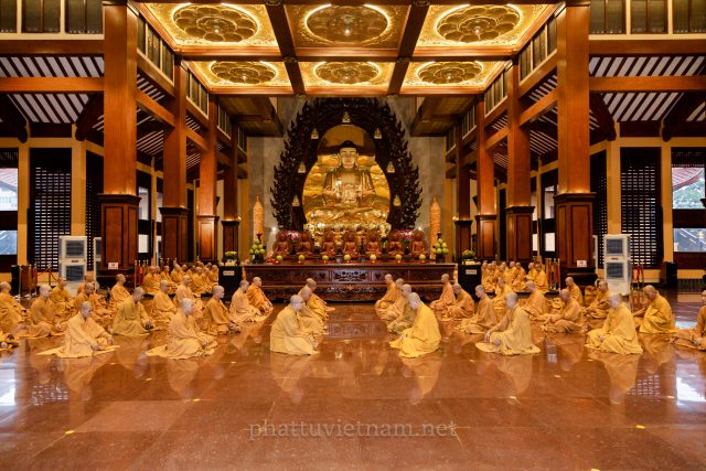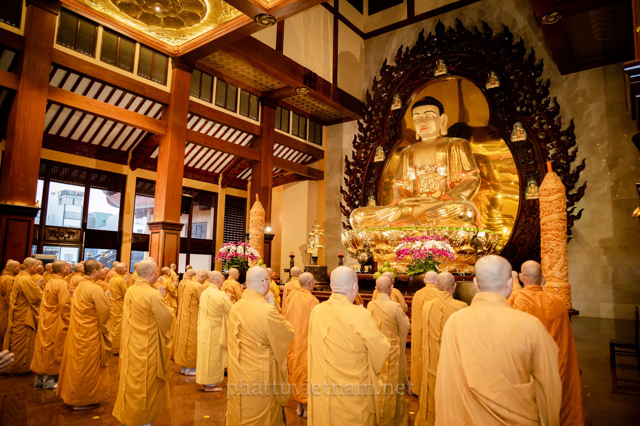 Buổi lễ lễ bố tát với sự tham dự chứng minh của HT.Thích Trí Quảng – Đệ nhất Phó Pháp chủ kiêm Giám luật HĐCM, Trưởng BTS GHPGVN TP.HCM cùng chư Tôn giáo phẩm, chư đại đức Tăng GHPGVN TP.HCM.