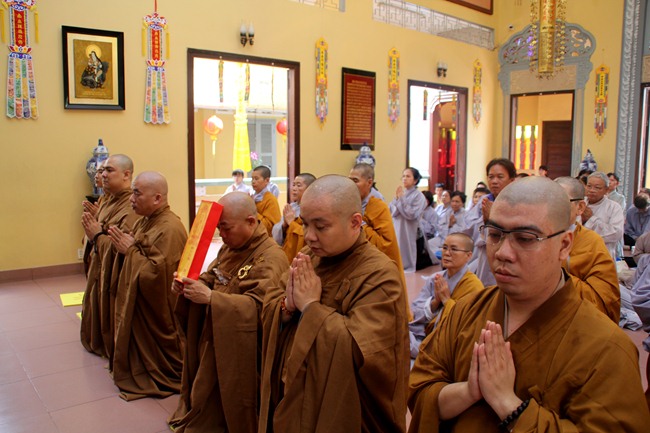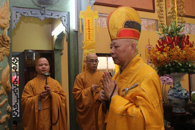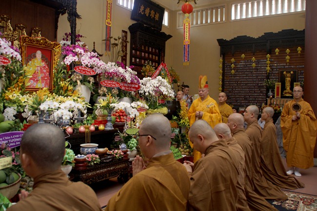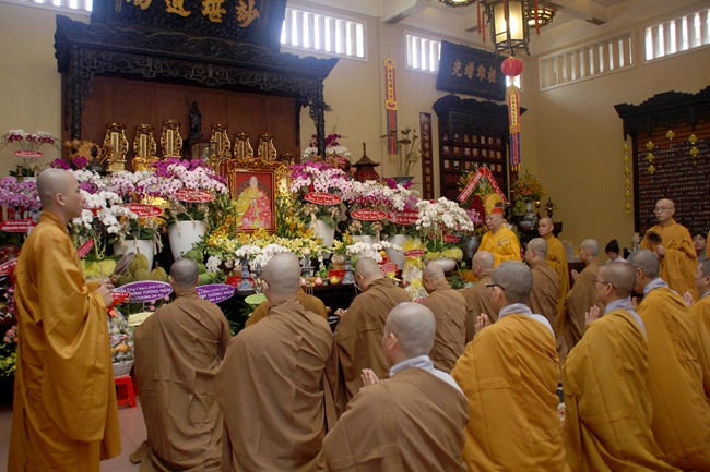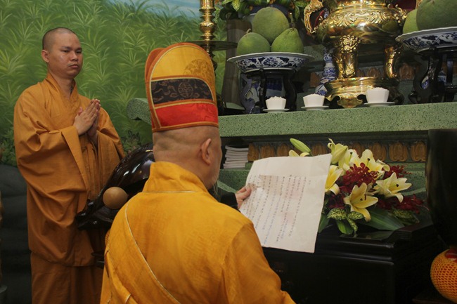 Buổi lễ cung khai kinh cúng ngọ, cung tiến giác linh với sự chủ sám là TT.Thích Lệ Trang Trưởng ban Nghi Lễ GHPGVN TP.HCM. Chư huynh đệ trong Tổ Đình cùng tông phong cuả cố Hòa Thượng đã tề tựu đông đủ để làm lễ tiến sư nhớ ơn đức cao dày của cố Hòa Thượng khi sinh tiền đã truyền trao giới thân huệ mạng.