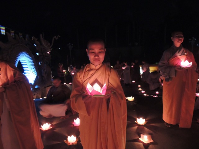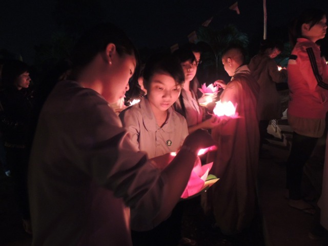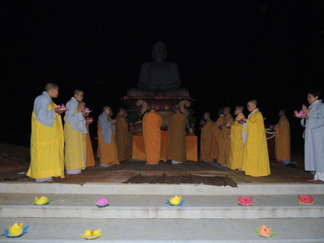Đêm lễ hội hoa đăng diễn ra trang nghiêm và thật trọng thể, Chư tôn đức nhà trường cùng toàn thể Tăng Ni sinh khóa 6 vân tập về dưới kim thân Đức Bổn Sư, một tôn tượng lịch sử, một chứng tích quan trọng của lịch sử Phật giáo tỉnh nhà để cùng chiêm ngưỡng Đức Bổn Sư Thích Ca Mâu Ni, hồi tưởng lại giây phút huy hoàng của Ngài, để đảnh lễ tưởng niệm dâng lời kinh trầm lắng, để thắp lên ngọn nến tri ân tiếp nối ngọn đèn trí tuệ siêu việt của ngài, để phát nguyện giữ gìn và truyền thừa ngọn đèn chánh pháp cho ngàn đời sau.