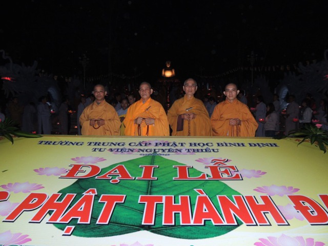 Hòa chung trong niềm vui ấy, để thâm tạ phần nào công đức vô tận của đấng giáo chủ cõi Ta Bà, đêm 19 tháng 01 năm 2013 (mùng 08 tháng chạp năm Nhâm Thìn) tại trường Trung Cấp Phật Học Bình Định (TCPH), điểm hội tụ tinh hoa giáo dục Phật giáo Bình Định, Ban Giám Hiệu long trọng tổ chức đêm Lễ Hội Hoa Đăng mừng ngày Đức Phật thành đạo. Về tham dự chứng minh có HT. Thích Tịnh Nhãn, Trưởng Ban giáo dục Tăng Ni PG tỉnh Bình Định. HT. Thích Quảng Bửu, Giám luật Trường TCPH Bình Định. Đại đức Thích Đồng Thành, Hiệu trưởng Trường TCPH Bình Định, Chư tôn đức Tăng Ni trong Ban Giám Hiệu, Ban Giáo Thọ, Ban Quản Chúng và gần 200 Tăng Ni sinh cùng đông đảo Thiện nam Tín nữ Phật tử.