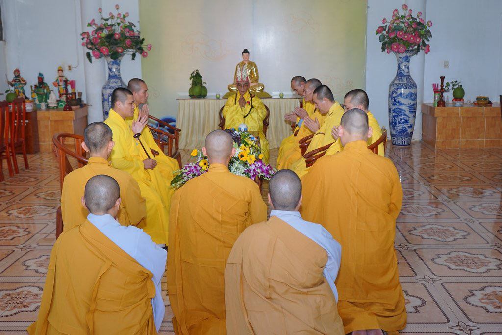 Buổi lễ diễn ra trang trọng dưới sự sám chủ của Hoà thượng Thích Tâm Thanh, trụ trì chùa Lôi Âm quận 11 Tp. Hồ Chí Minh. Tham gia chú nguyện có TT. Thích Nhuận Nghĩa, Uỷ viên HĐTS Trung ương GHPGVN – Phó Trưởng ban Thường trực BTS tỉnh; TT. Thích Thiện Thuận, UVDK HĐTS – Phó Trưởng ban – Chánh Thư ký kiêm Trưởng ban Hoằng pháp BTS tỉnh; TT. Thích Nhuận Trí, Phó Trưởng ban kiêm Phó Trưởng ban Thường trực Ban Tăng sự tỉnh; TT. Thích Vĩnh Tế, Trưởng Ban Pháp chế BTS tỉnh cùng môn đồ pháp quyến – thế quyến.