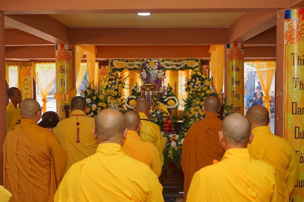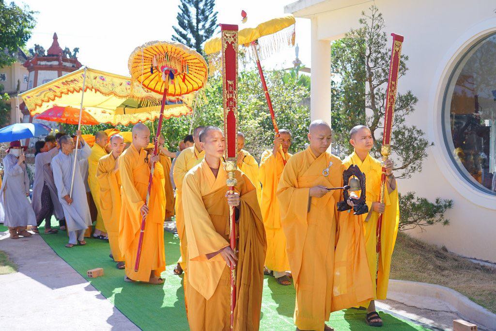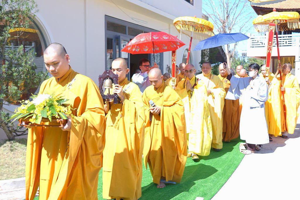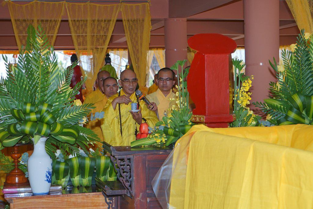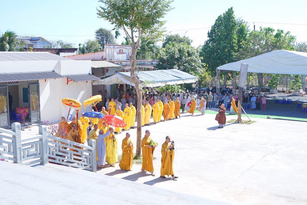 Buổi lễ diễn ra trang trọng dưới sự sám chủ của Hoà thượng Thích Tâm Thanh, trụ trì chùa Lôi Âm quận 11 Tp. Hồ Chí Minh. Tham gia chú nguyện có TT. Thích Nhuận Nghĩa, Uỷ viên HĐTS Trung ương GHPGVN – Phó Trưởng ban Thường trực BTS tỉnh; TT. Thích Thiện Thuận, UVDK HĐTS – Phó Trưởng ban – Chánh Thư ký kiêm Trưởng ban Hoằng pháp BTS tỉnh; TT. Thích Nhuận Trí, Phó Trưởng ban kiêm Phó Trưởng ban Thường trực Ban Tăng sự tỉnh; TT. Thích Vĩnh Tế, Trưởng Ban Pháp chế BTS tỉnh cùng môn đồ pháp quyến – thế quyến.