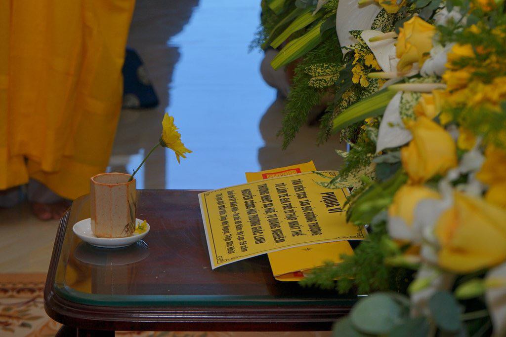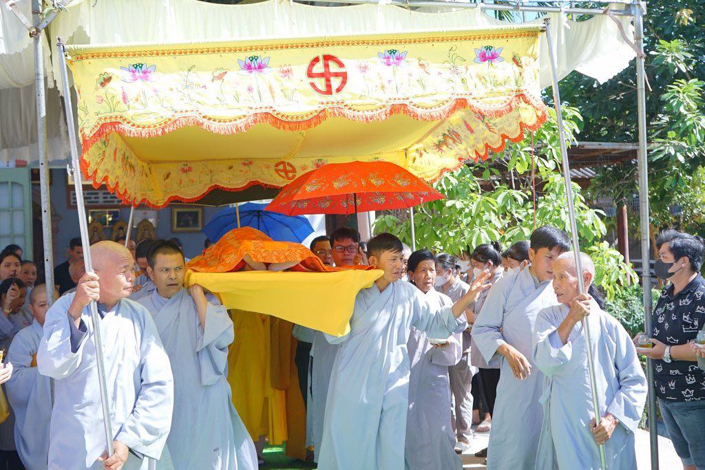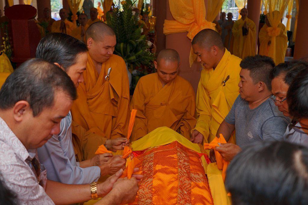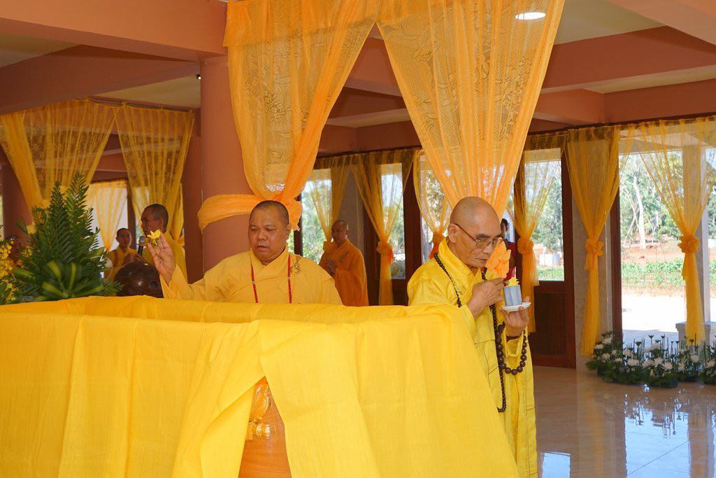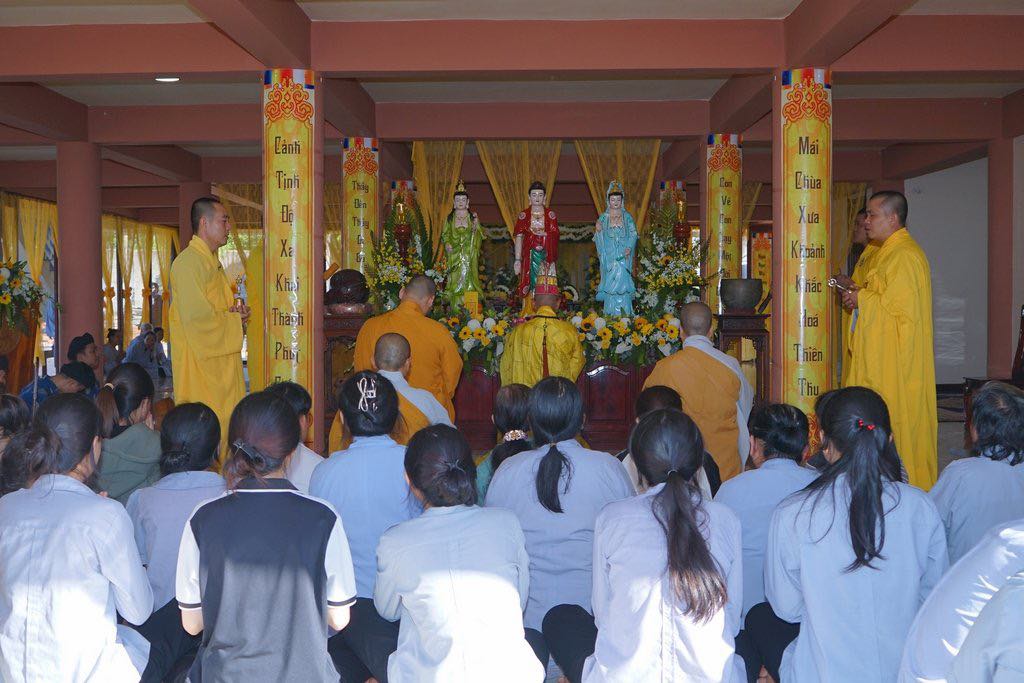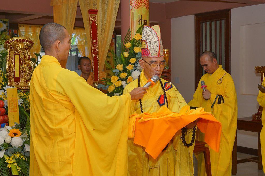 Buổi lễ diễn ra trang trọng dưới sự sám chủ của Hoà thượng Thích Tâm Thanh, trụ trì chùa Lôi Âm quận 11 Tp. Hồ Chí Minh. Tham gia chú nguyện có TT. Thích Nhuận Nghĩa, Uỷ viên HĐTS Trung ương GHPGVN – Phó Trưởng ban Thường trực BTS tỉnh; TT. Thích Thiện Thuận, UVDK HĐTS – Phó Trưởng ban – Chánh Thư ký kiêm Trưởng ban Hoằng pháp BTS tỉnh; TT. Thích Nhuận Trí, Phó Trưởng ban kiêm Phó Trưởng ban Thường trực Ban Tăng sự tỉnh; TT. Thích Vĩnh Tế, Trưởng Ban Pháp chế BTS tỉnh cùng môn đồ pháp quyến – thế quyến.