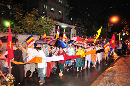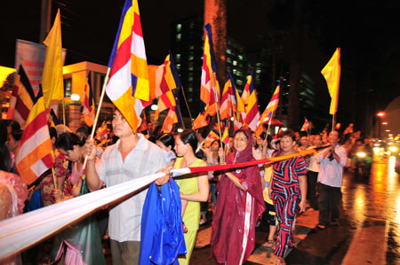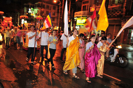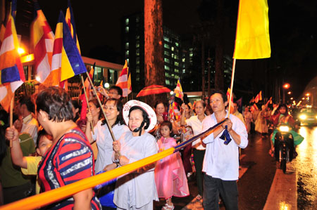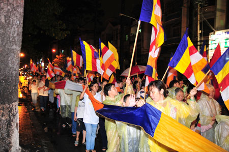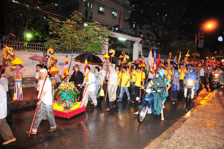 Đêm 13/4 âl (17/5/2008), chùa Giác Tâm, quận 5, TP.HCM đã làm lễ rước Phật qua một số trục đường chính tại quận 5. Mặc dù trời mưa nhưng tất cả mọi người đều rất vui mừng được cầm cờ theo đoàn xe hoa kéo tay đi rước Phật.